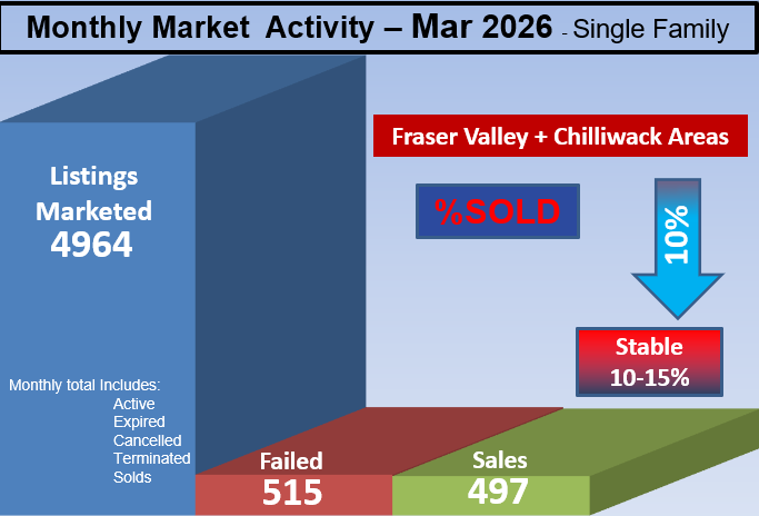 Current: Fraser Valley and the Chilliwack areas in Stable Market averaging a 11.2%SOLD rate. See each city link for the full details