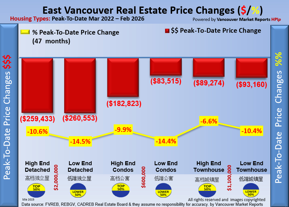 History: The East Vancouver Year-To-Date Home Price Index HPIp (Top 50%) shows that prices decreased $149,773.