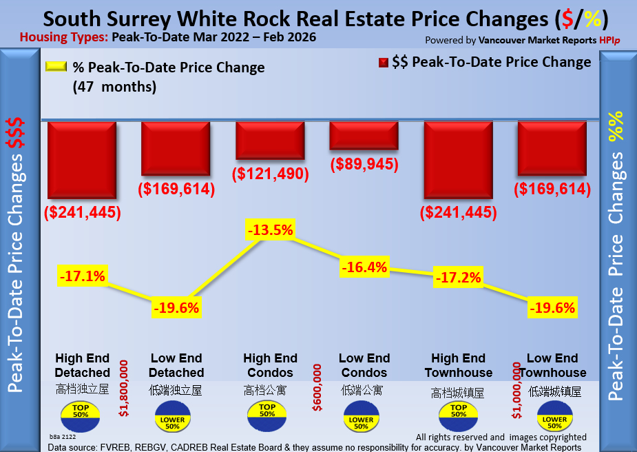 History: The S. Surrey White Rock Year-To-Date Home Price Index HPIp (Top 50%) shows that prices decreased $228,839.