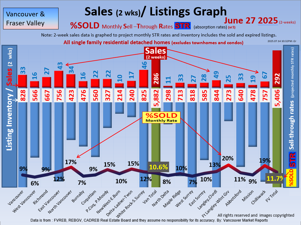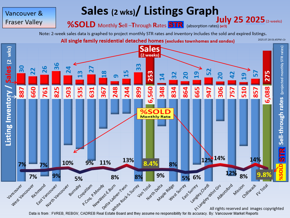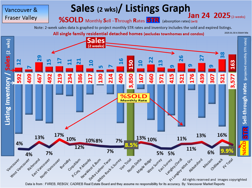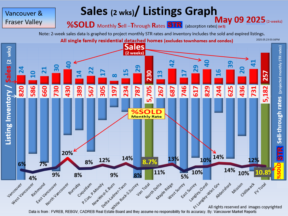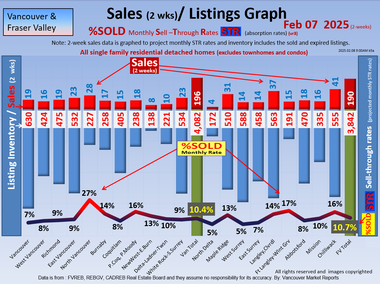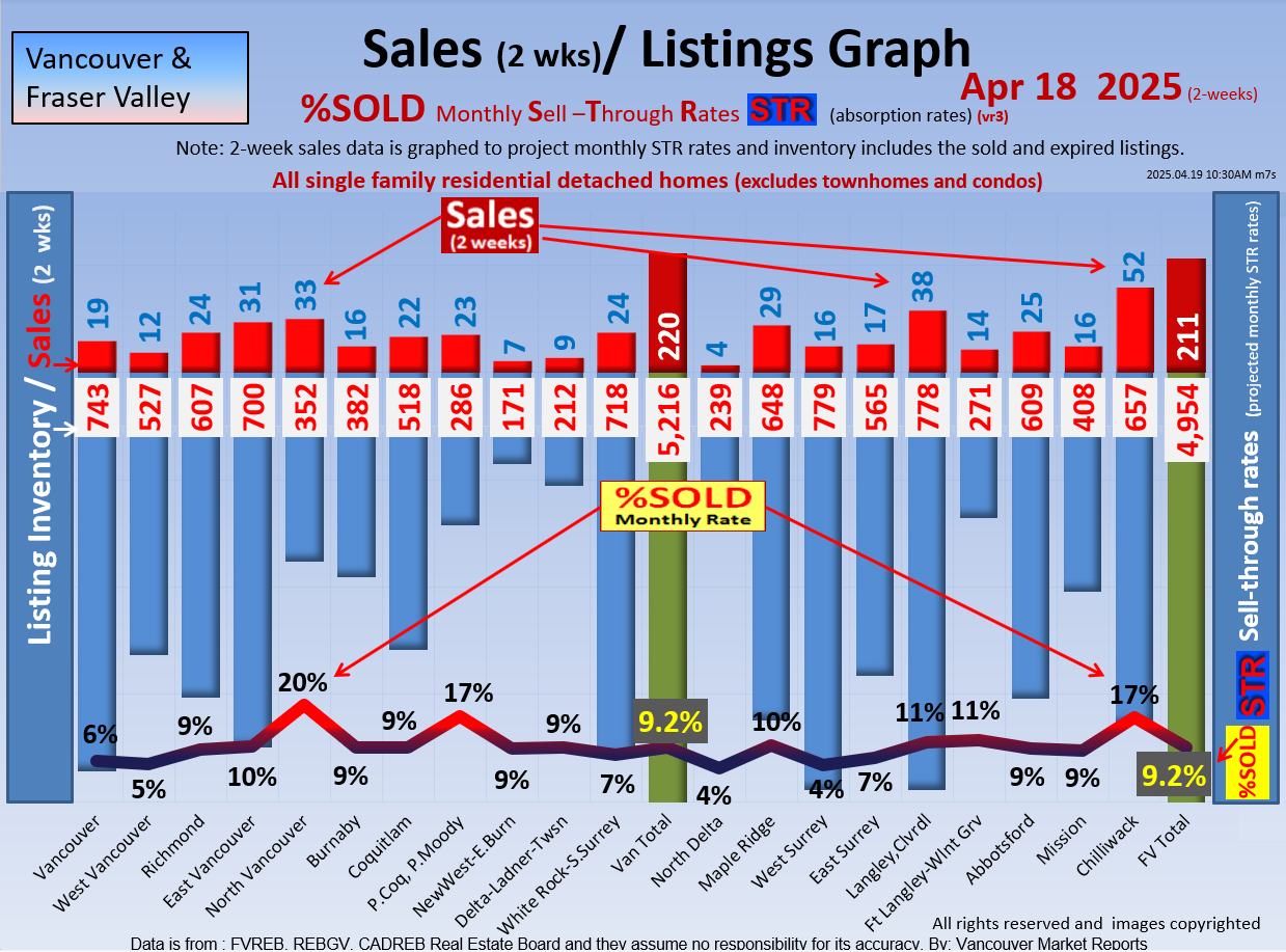 #2 The area east of it, namely of the Fraser Valley Real Estate Board: Surrey to Chilliwack. Here we see the first area has a 30% monthly listing sell-through and the area east of it is currently at a 9% monthly sell-through to read more ..click here